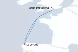 Itinerario : Barcelona, Cartagena, Malaga, Vigo, La Coruña, Southampton