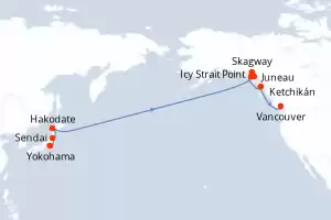Itinerario : Yokohama, Sendai, Hakodate, date, Icy Strait Point, Juneau, Skagway, Ketchikán, Vancouver