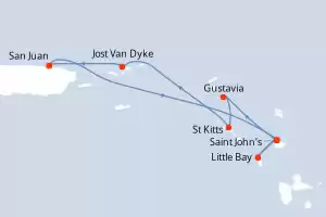 Itinerario : San Juan, Saint John's, Little Bay, Saint John's, Gustavia, St Kitts, Jost Van Dyke, San Juan