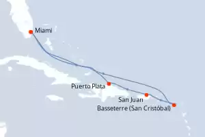 Itinerario : Miami, Basseterre (St Kitts), San Juan, Puerto Plata, Miami