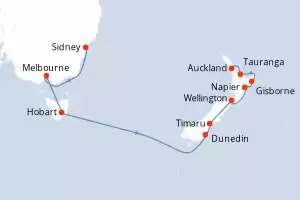 Itinerario : Sidney, Melbourne, Hobart, Dunedin, Timaru, Wellington, Napier, Gisborne, Tauranga, Auckland