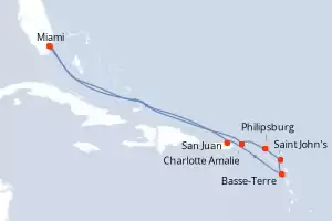 Itinerario : Miami, San Juan, Basse-Terre (Guadalupe), Saint John's, Philipsburg, Charlotte Amalie, Miami