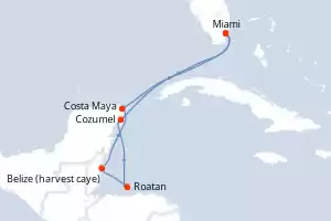 Itinerario : Miami, Costa Maya, Belize (harvest caye), Roatan, Cozumel, Miami