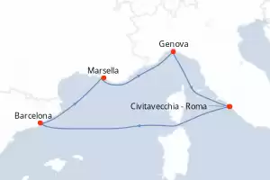 Itinerario : Civitavecchia - Roma, Barcelona, Marsella, Genova, Civitavecchia - Roma