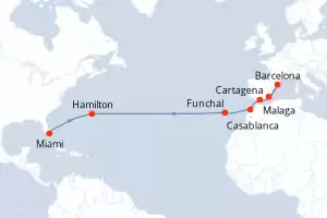 Itinerario : Barcelona, Cartagena, Malaga, Casablanca, Funchal, Hamilton, Miami