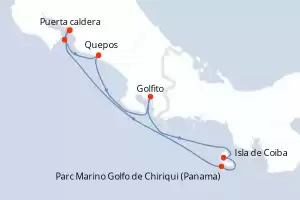 Itinerario : Puerta caldera, Quepos, Golfito, Isla de Coiba, Parc Marino Golfo de Chiriqui (Panama), Isla de Tortuga, Puerta caldera