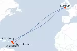 Itinerario : Philipsburg, Frenchmans Cay (VI), carambola Beach, Saint John's, Port Elizabeth St Vincent, Grenada, Bridgetown, carambola Beach, Terre de Haut, Saint-Pierre (Martinique), Saint John, Rodney bahia, Bridgetown